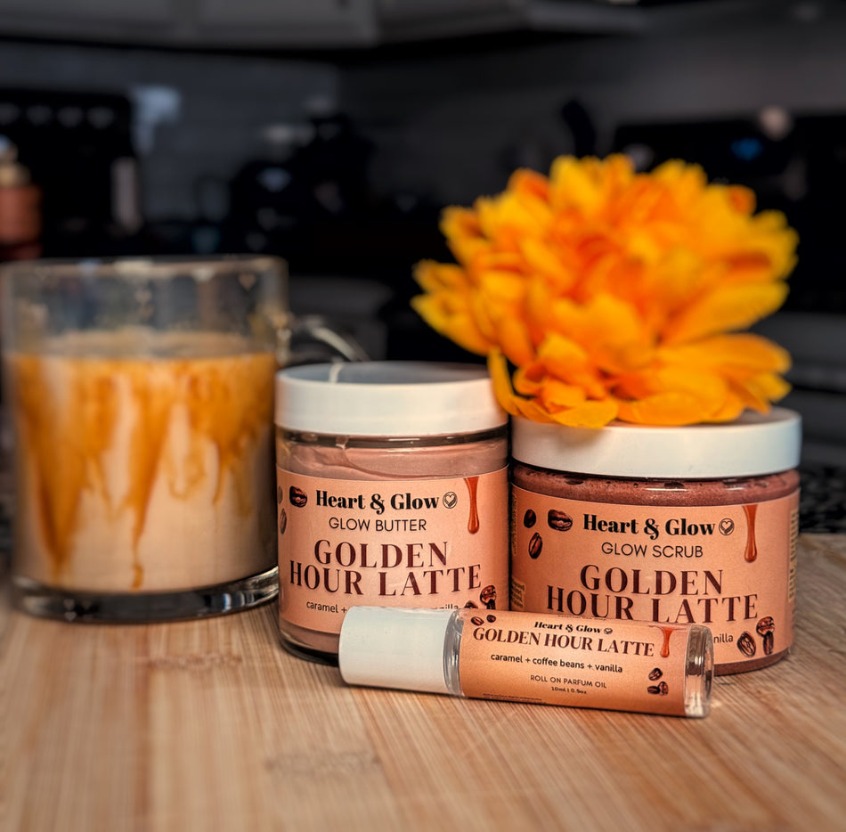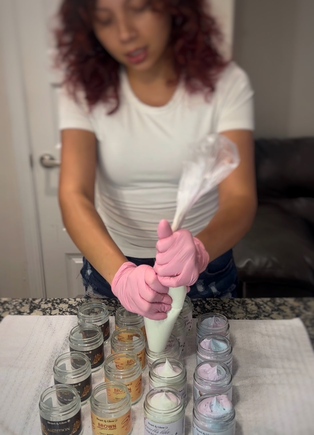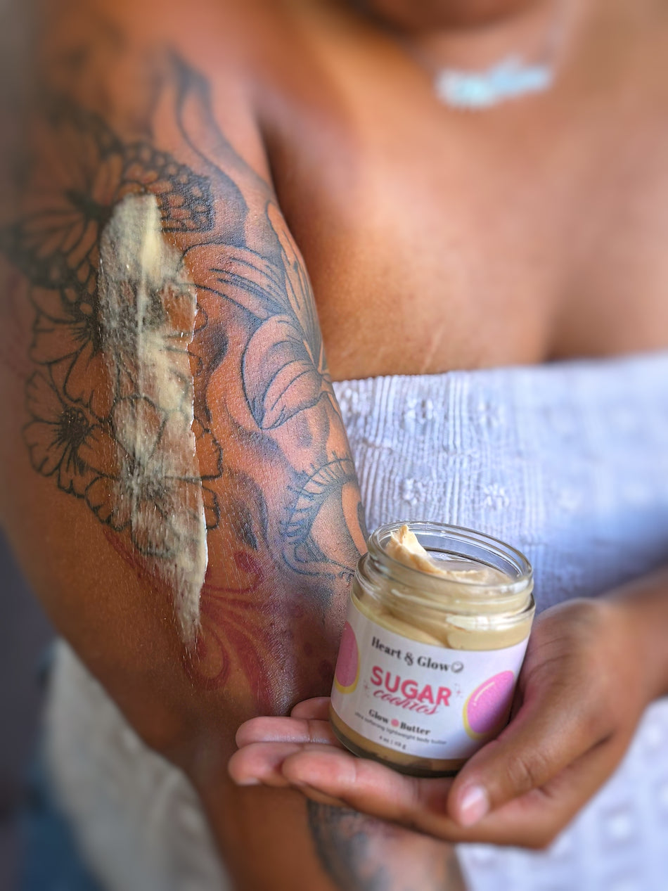 Glow Butter: Our cloud-like whipped butters are hand-crafted to envelop your skin in nourishment, leaving it luminous and irresistibly soft. No stickiness, just pure indulgence. Self-care has never felt this luxurious.